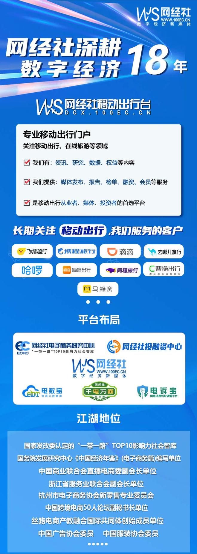 网经社深耕数字经济行业18年,长期关注移动出行,我们重点报道和研究的公司有1、网约车:滴滴出行、曹操出行、T3出行、花小猪出行、享道出行、阳光出行、万顺叫车、首汽约车、嘀嗒出行、神州专车、斑马快跑、帮邦行、飞嘀打车、量子出行等;2、Robotaxi:小马智行、文远知行、萝卜快跑、如祺出行等;3、聚合平台:高德打车、百度打车、腾讯出行、美团打车等;4、租车:一嗨租车、神州租车、悟空租车、华夏出行、GoFun出行等;5、共享(电)单车:青桔单车、美团单车、哈啰出行、松果出行等;6、停车平台:ETCP停车、爱泊车等;7、代驾平台(3家):e代驾、爱代驾、安师傅代驾等;8、在线旅游:携程、同程旅行、马蜂窝、美团旅行、去哪儿、飞猪、途牛、穷游网、客路旅行、在途商旅、猫途鹰、KKday、皇包车、稀饭旅行、航旅纵横、众信旅游等;9、民宿短租:途家民宿、木鸟民宿、小猪民宿等。